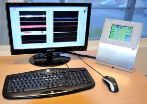 L’application présente sur l’ordinateur et développée sous Labview, permet de visualiser les signaux issus des différents capteurs et échantillonnés de manière spécifique. Ainsi toutes ces données sont visibles en temps réel sur des graphes déroulants. Elles sont également formatées, horodatées et enregistrées en local dans différents fichiers, afin d’être exploitées en hors ligne, et traitées en vue de l’élaboration des indicateurs ou « feature » propres au pronostic des défaillances des roulements. |