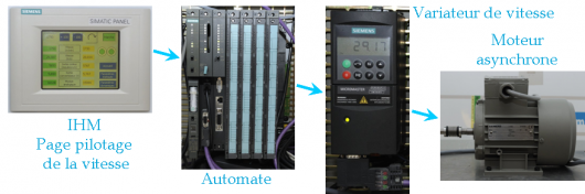 L’IHM permet à l’opérateur d’imposer la vitesse de rotation du moteur asynchrone. Elle offre également la visualisation des paramètres statiques et dynamiques du moteur, tels que la température instantanée exprimée en pourcentage de sa température maximale d’utilisation . Ceci nous permet d’imposer une contrainte radiale conséquente, tout en surveillant la température du moteur et de l’arrêter au besoin.