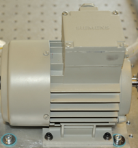 Ce moteur permet d’entrainer le roulement de test en rotation par l’intermédiaire de la bague interne de ce dernier. La vitesse maximale ainsi atteignable est de 2000 tr/min, car limitée par un des instruments de mesure (le couplemètre). |