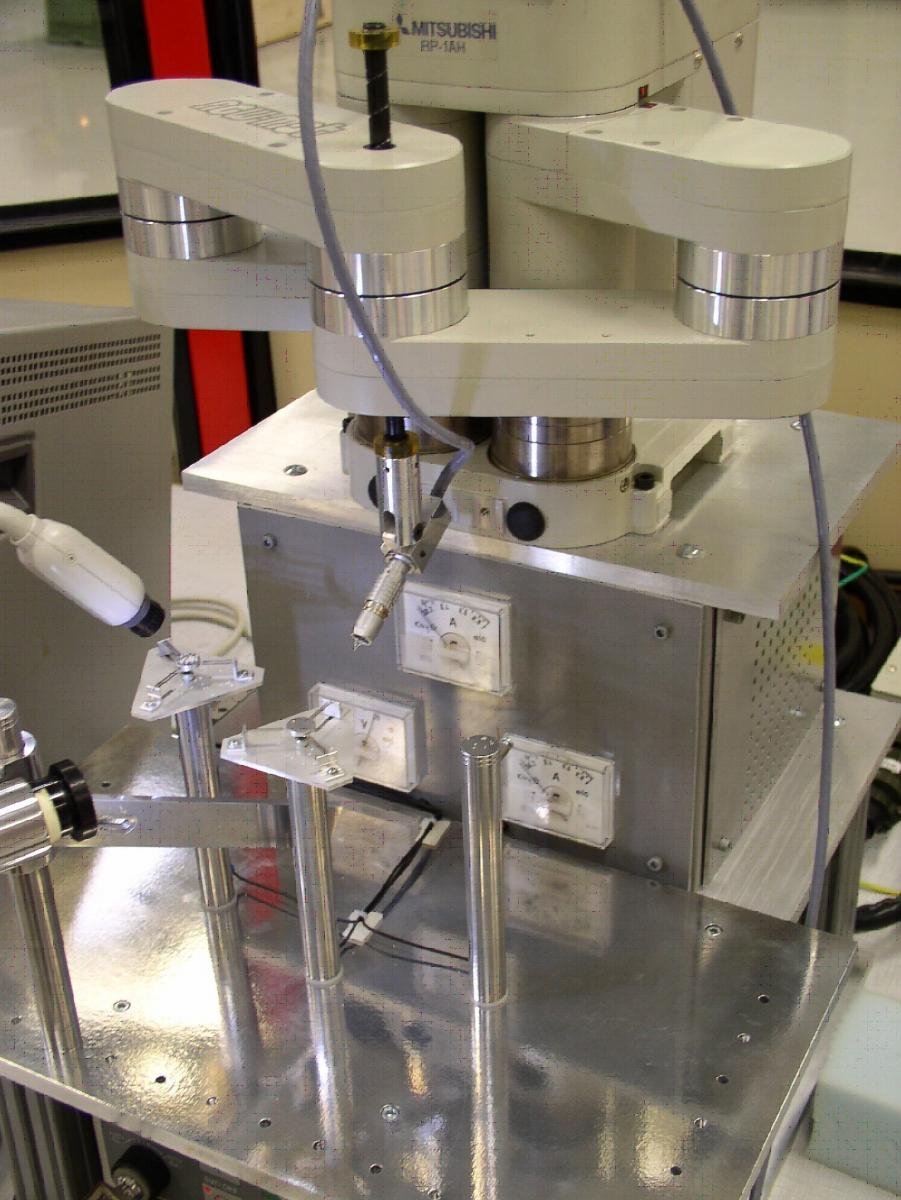 - Un système de vision composé de deux caméras (vue de dessus et vue de profil) et d’un moniteur permettant à l’opérateur de suivre en temps réel l’évolution des tâches de micromanipulation ;